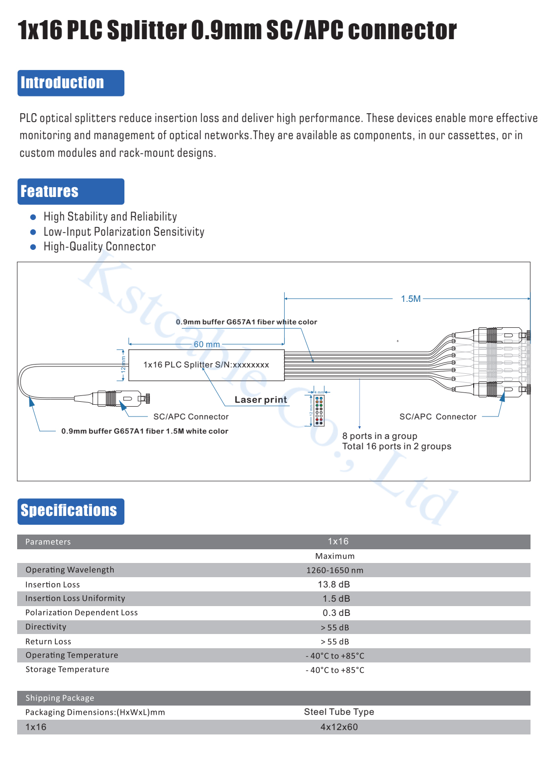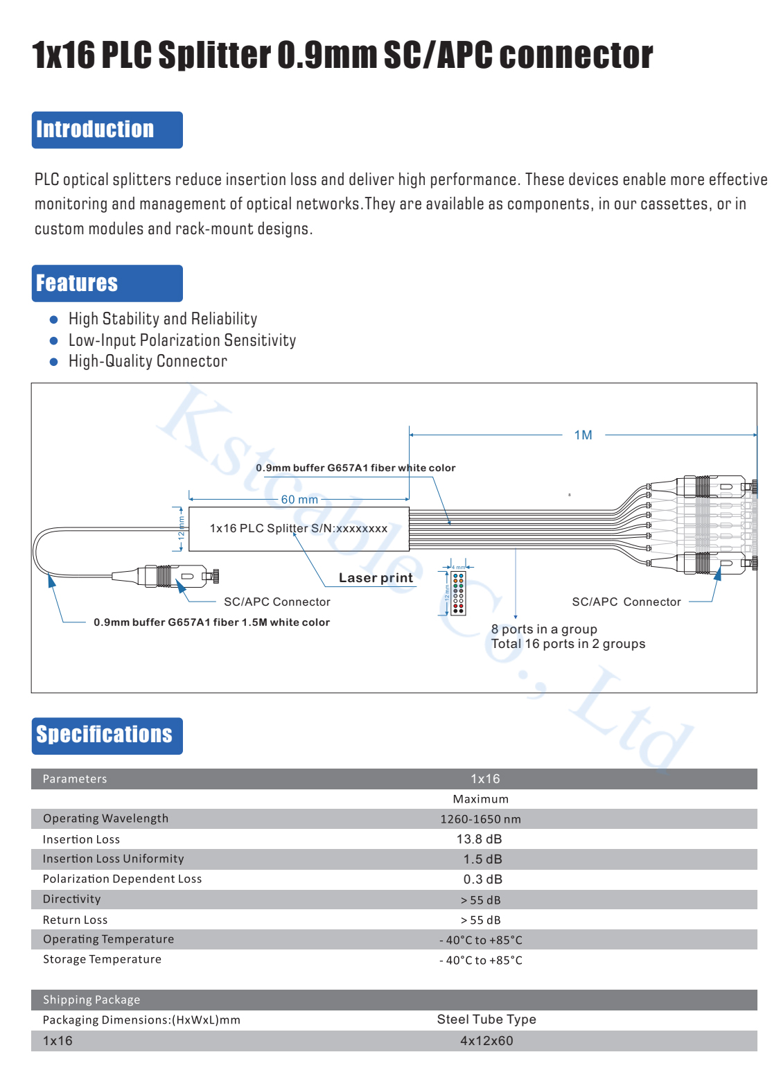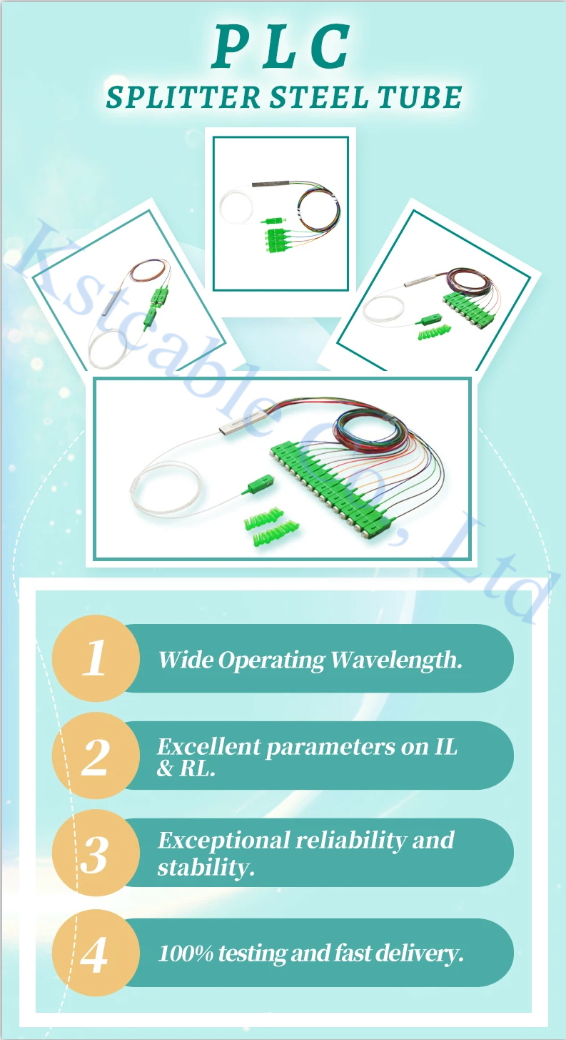 Optical fibe cable 1X16 Planar lightwave circuit (PLC) splitter steel tube type