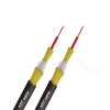 Between the inner and outer layer of Kevlar yarn is the white color LSZH inner sheath, The outermost layer of the cable is the black color PE outer jacket with two parallel FRP strength members in each side of it, the FPR and Kevlar yarn functioned as strength member and reinforce the tensile strengh of the cable.