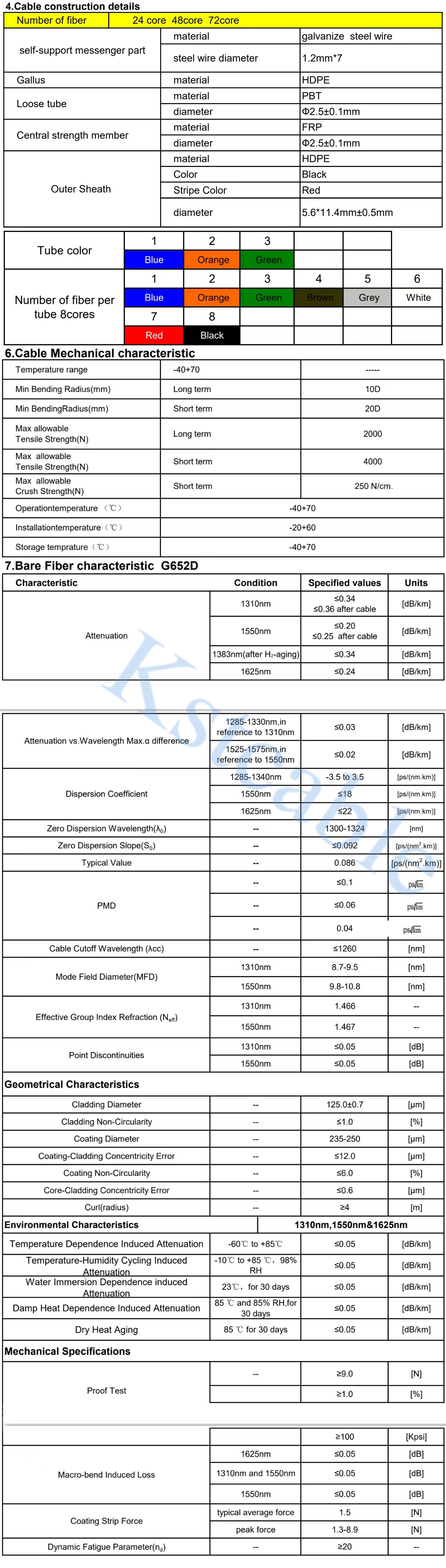 water-resistant filling compound. A FRP locates in the center of core as a non- metallic strength member. The tubes