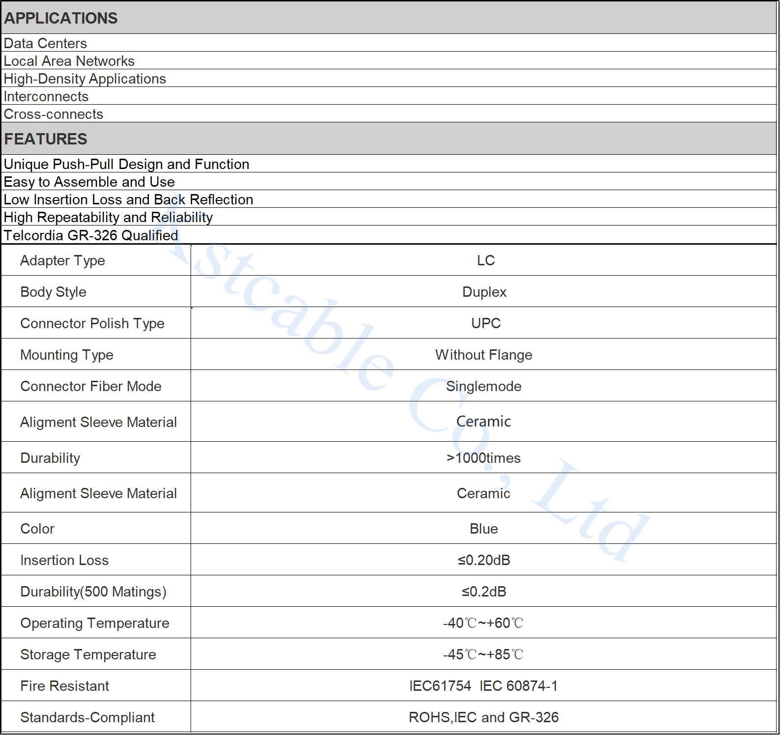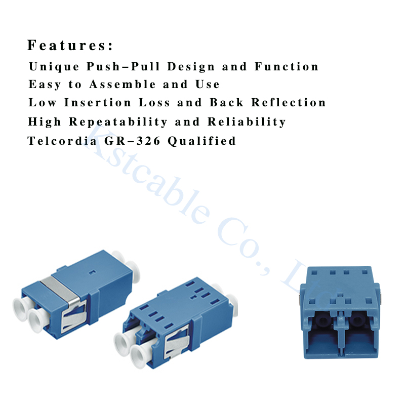 Fiber optic adapter, also called coupler, is a small device designed to terminate or link the fiber optic cables or fiber optic connectors between two fiber optic lines. By linking two connectors precisely, fiber optic adapters allow the light sources to be transmitted at most and lower the loss as much as possible. At the same time, fiber optic adapters have the merits of low insertion loss, good interchangeability and reproducibility. And each fiber optic Adapter is functionally tested before shipping.