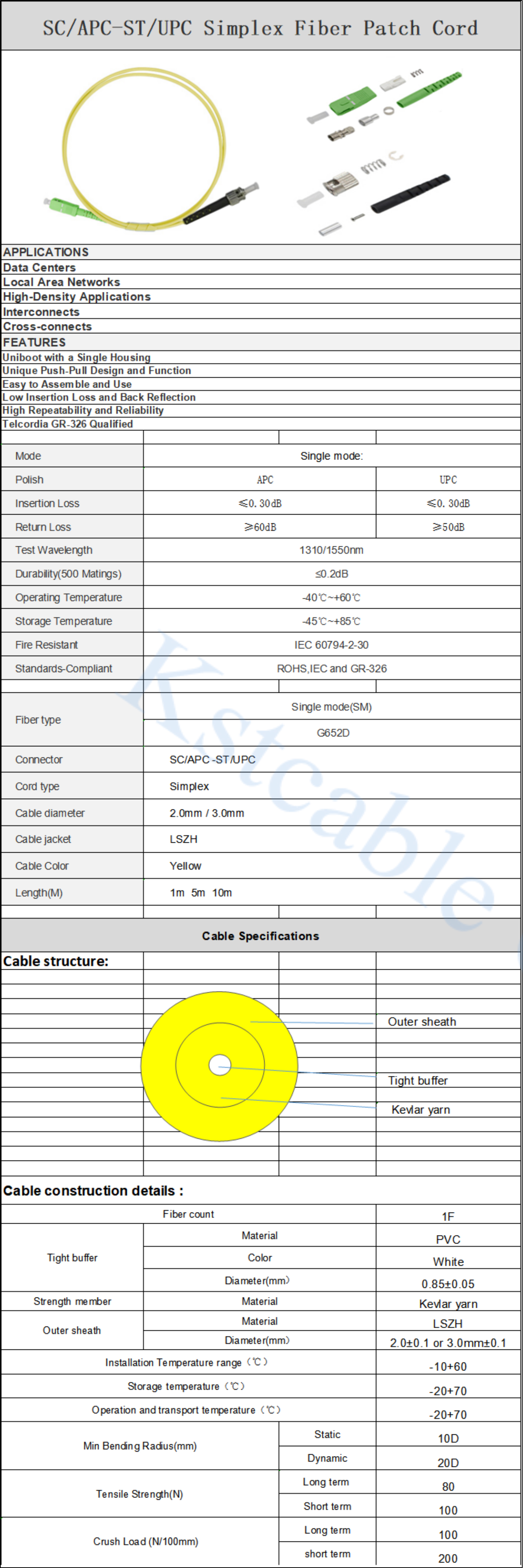SC/APC-ST/UPC Fiber Patch Cord